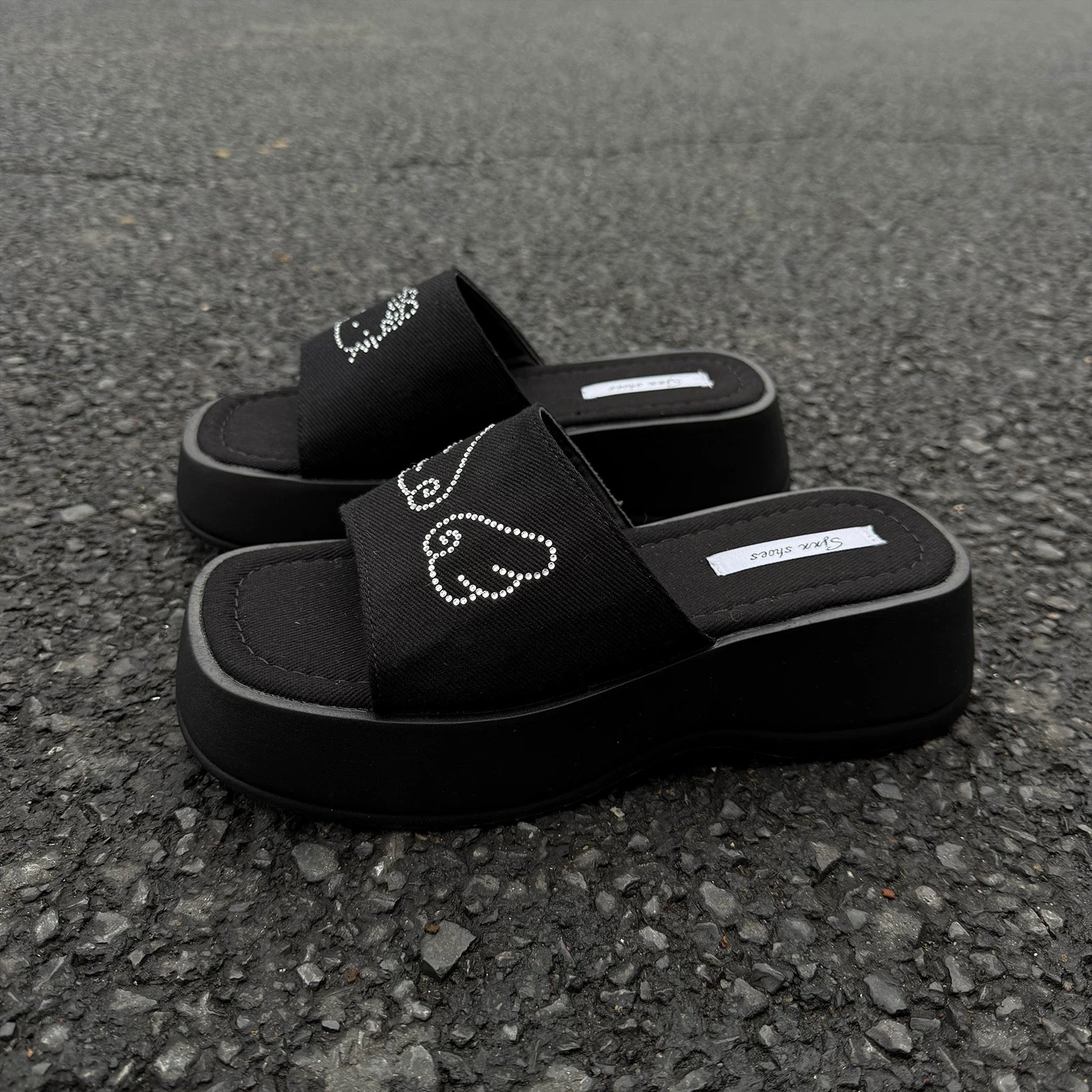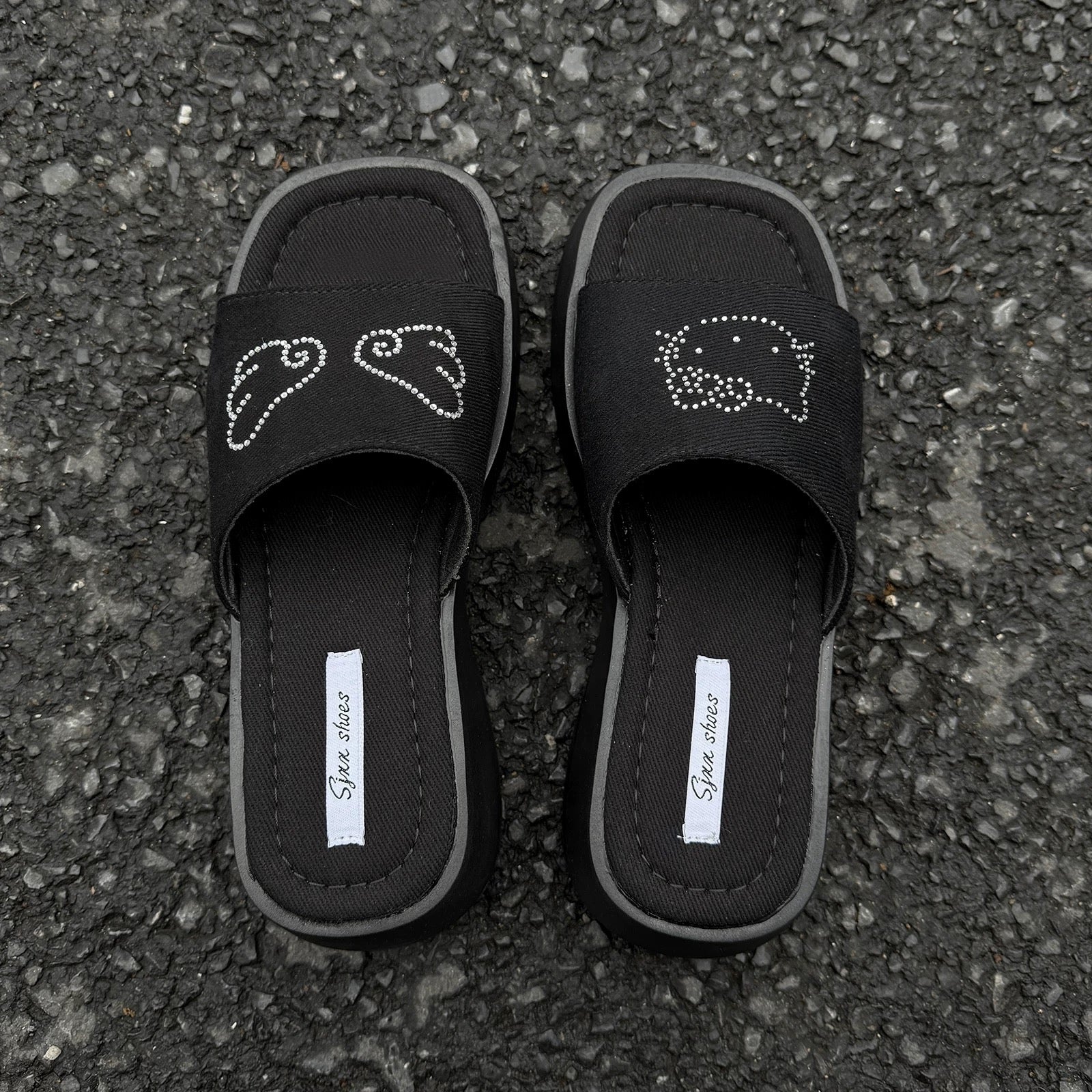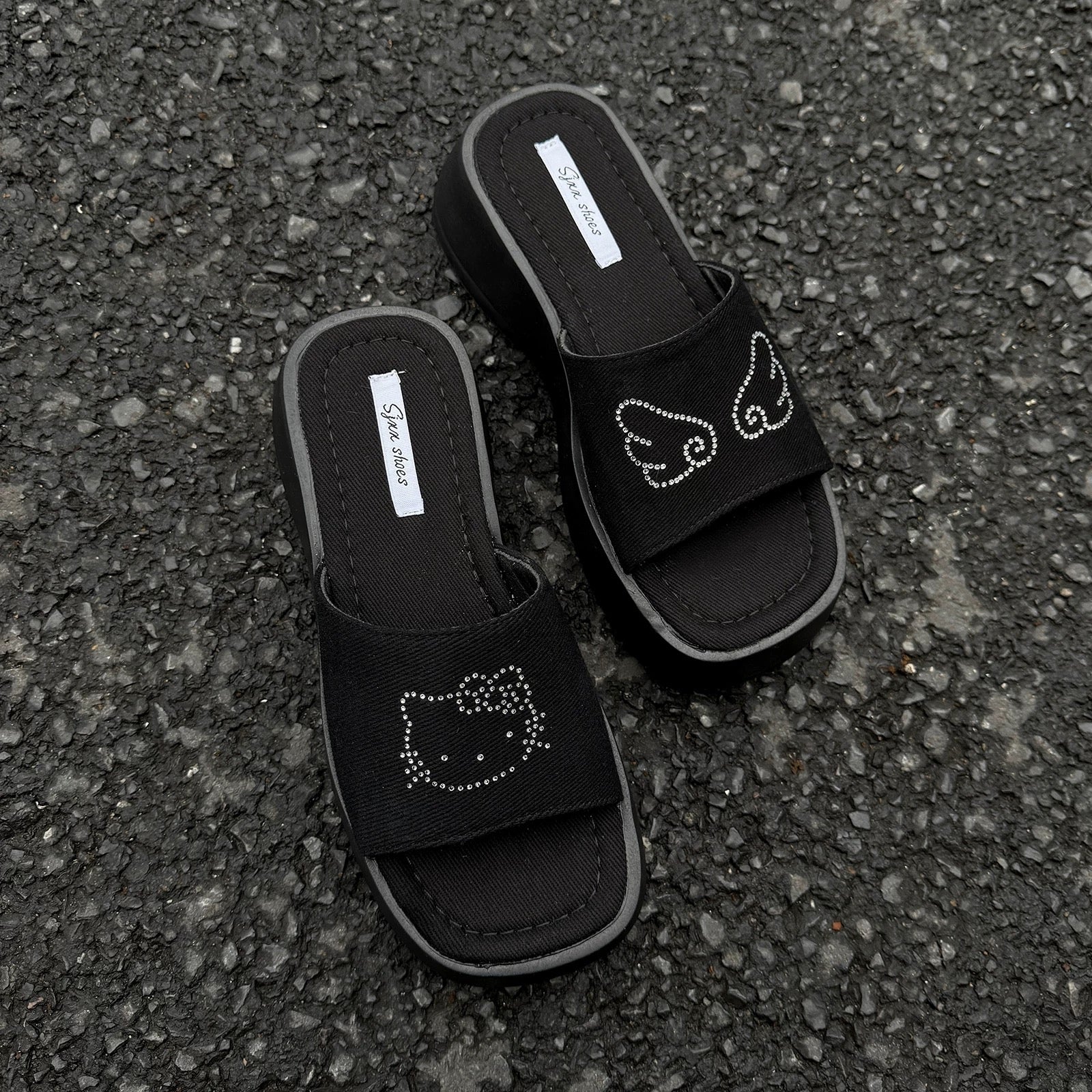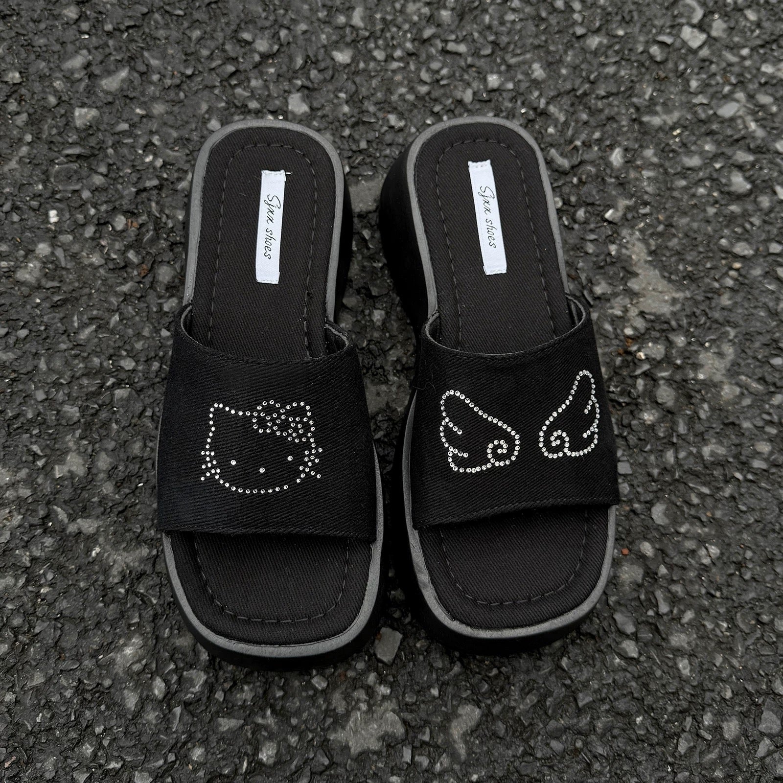 Step into the spotlight with our HelloKitty Black Heightening Sandals! Perfect for sunny beach days or city strolls, these chic sandals add 6cm of height to make you look taller and slimmer effortlessly. The hand-embellished HelloKitty design brings a touch of playful cuteness, while the sleek black color keeps it edgy and versatile. Whether you're going for a Y2K vibe, hot girl style, or just want to stand out, these sandals are your ultimate fashion staple—bold, fun, and totally wearable with any outfit!